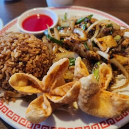 Delicious food fresh ingredients and huge servings. Leftovers for lunch tomorrow!! The shrimp fried rice, Mongolian beef and crab appetizers were perfect. Clean place. Good parking.